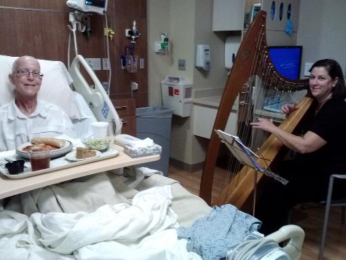 Today we had the special treat of Liz’s mom playing in a string quartet (assuming I counted correctly from my vantage point) in the lobby of the hospital. She is so talented, and of course it was nice to see her and speak to her, if ever so briefly.
