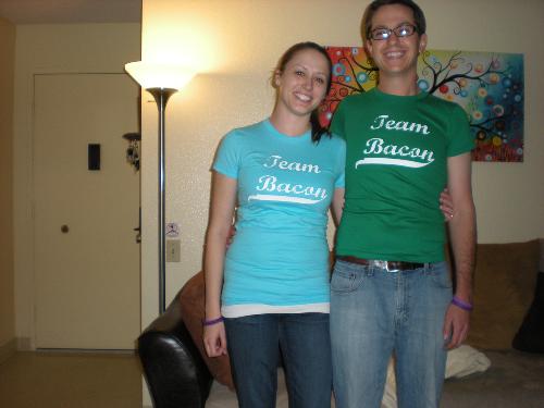 Each and every day Cathy and I are fighting this disease with all our might. I could not do this without her. And of course Laura and Dan are such a source of strength and determination that I could not do this without them, either. I want to win for them and Cathy as much as for anything or anyone else. And as I have said before, you are helping me win, too. This is clearly a team effort (as beautifully shown by Liz and Dan, with their new Team Bacon shirts). We are all fighting and winning together.