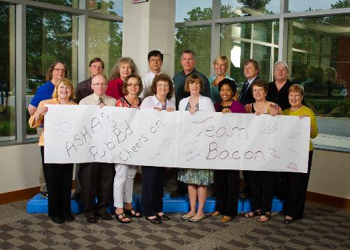 I am now at Piper, sporting my new shirt that I got from Dan for Father’s Day. I have gotten a lot of compliments about it. It is perfect for chemo days (and any other day, for that matter). It is long-sleeved (perfect for when the air-conditioning is just a bit too chilly in Piper), button-downed (perfect for easy access to my port for delivering the chemotherapy drugs), and embroidered with “Team Bacon” above the pocket (just plain perfect). I may wear it every time I’m scheduled for chemo.